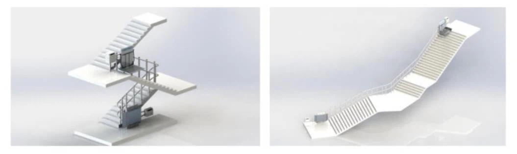 ลิฟท์แพลตฟอร์มสำหรับรถเข็นรุ่นนี้ถูกออกแบบมาเพื่อใช้งานบนบันไดที่มีระดับความสูงหลายชั้น ทางโค้ง หรือมีลานพักกลาง โดยลิฟท์จะเคลื่อนที่ตามรางที่ติดตั้งขนานกับด้านข้างของบันได พาผู้ใช้งานพร้อมรถเข็นขึ้น-ลงได้อย่างปลอดภัย