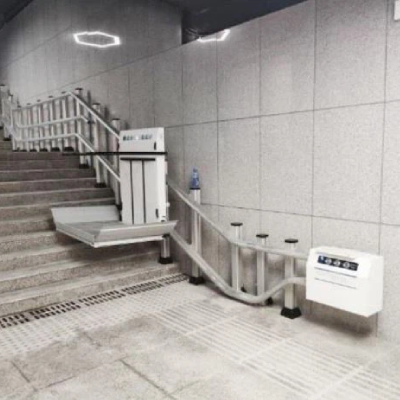 ลิฟท์สำหรับรถเข็นแบบเอียง (Inclined Wheelchair Lift Platform) รุ่นพิเศษจาก YOURLIFT สำหรับบันไดหลายชั้น ทางโค้ง และมีลานพัก