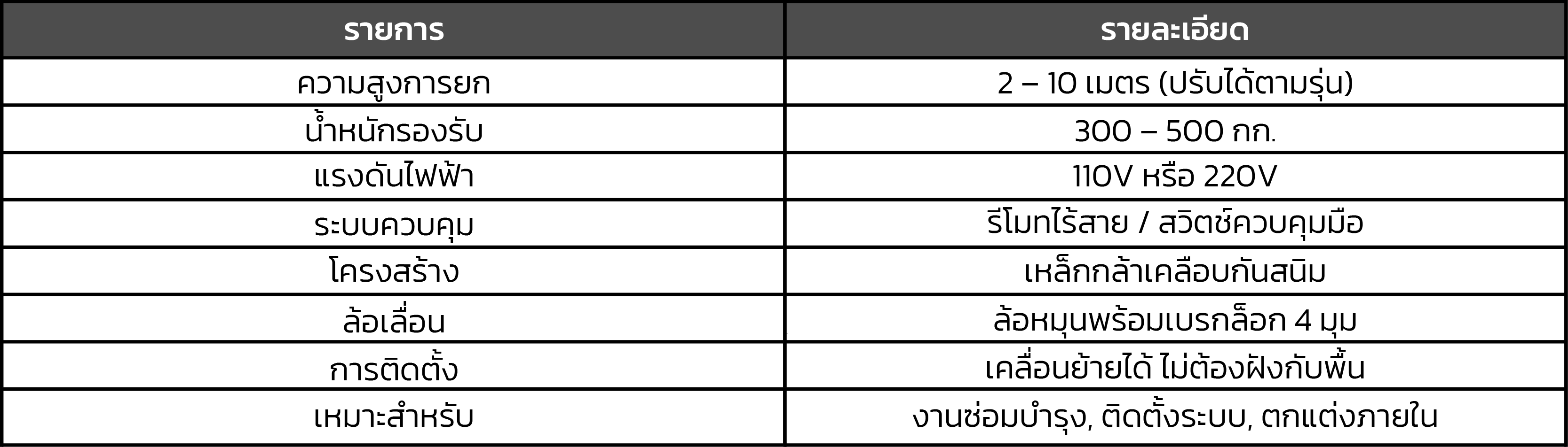 • ยกได้สูงถึง 2 – 10 เมตร