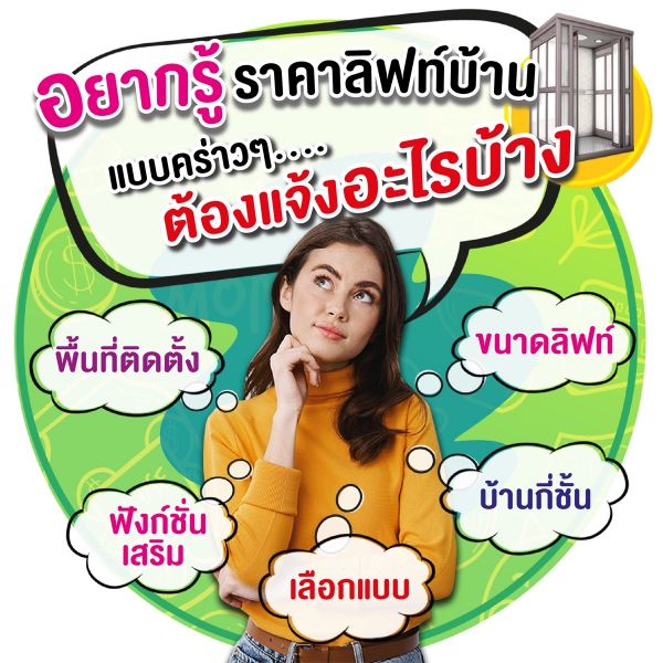 หลายท่านอาจจะเคยสงสัยว่าเหตุใดเราถึงไม่แจ้งราคาลิฟท์บ้าน นั่นเป็นเพราะรายละเอียดต่างๆ นั้นมีความซับซ้อน เพราะการติดตั้งลิฟท์บ้านนอกจากตัวลิฟท์แล้ว เราจะต้องทราบอีกหลายปัจจัย เพื่อนำมาประเมินราคา วันนี้ YourLift เลยจะบอกเคล็ดลับรู้ราคาอย่างรวดเร็ว ว่าต้องแจ้งอะไรบ้างดังต่อไปนี้