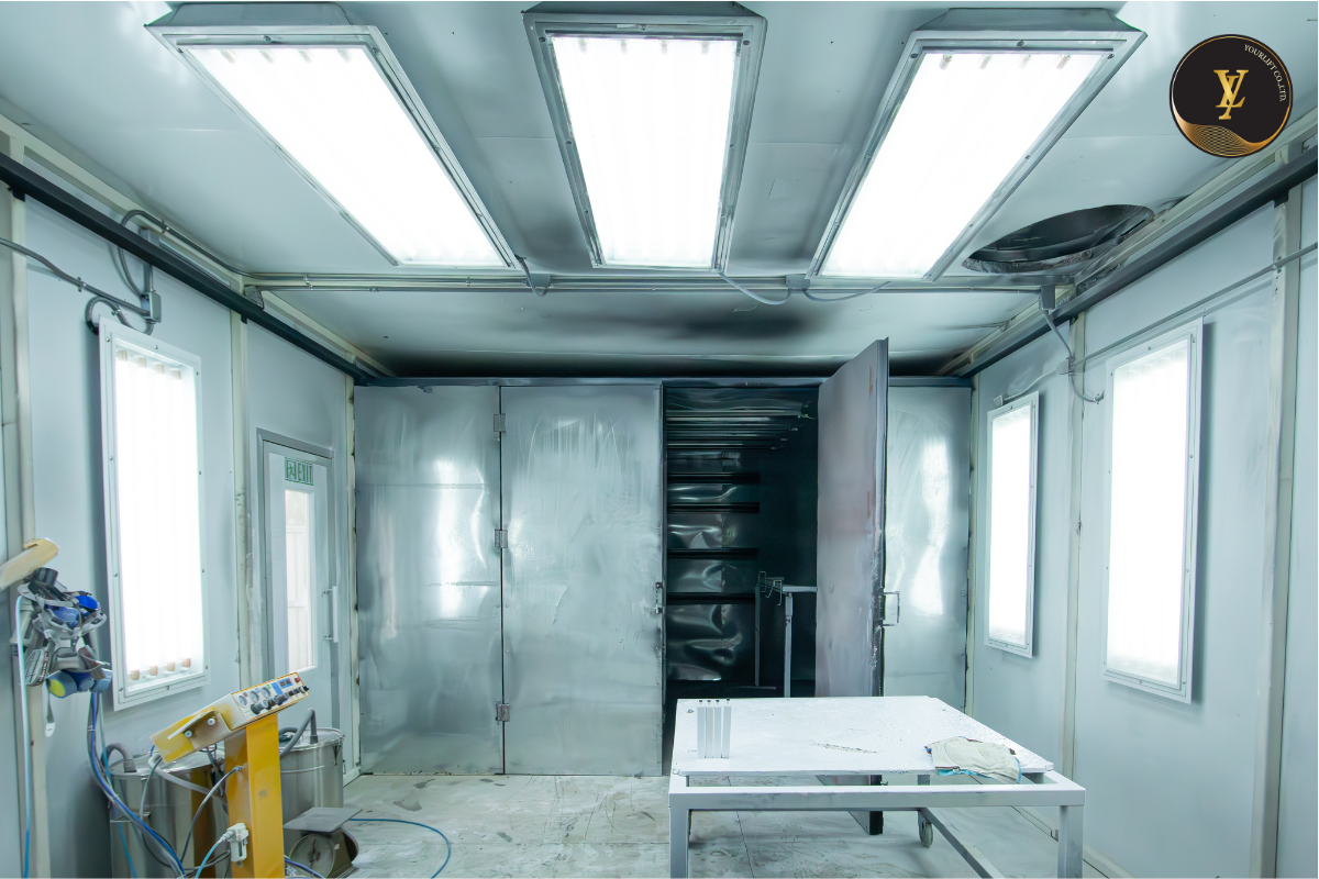 Yourlift ใช้ ห้องพ่นสีระบบปิด ที่ออกแบบมาให้สามารถควบคุมคุณภาพการพ่นสีได้อย่างมีประสิทธิภาพ ลดการฟุ้งกระจายของละอองสีและป้องกันสิ่งสกปรกจากภายนอก ทำให้สีเคลือบได้อย่างเรียบเนียนและสม่ำเสมอ นอกจากนี้ ห้องพ่นสีของเรายังมี