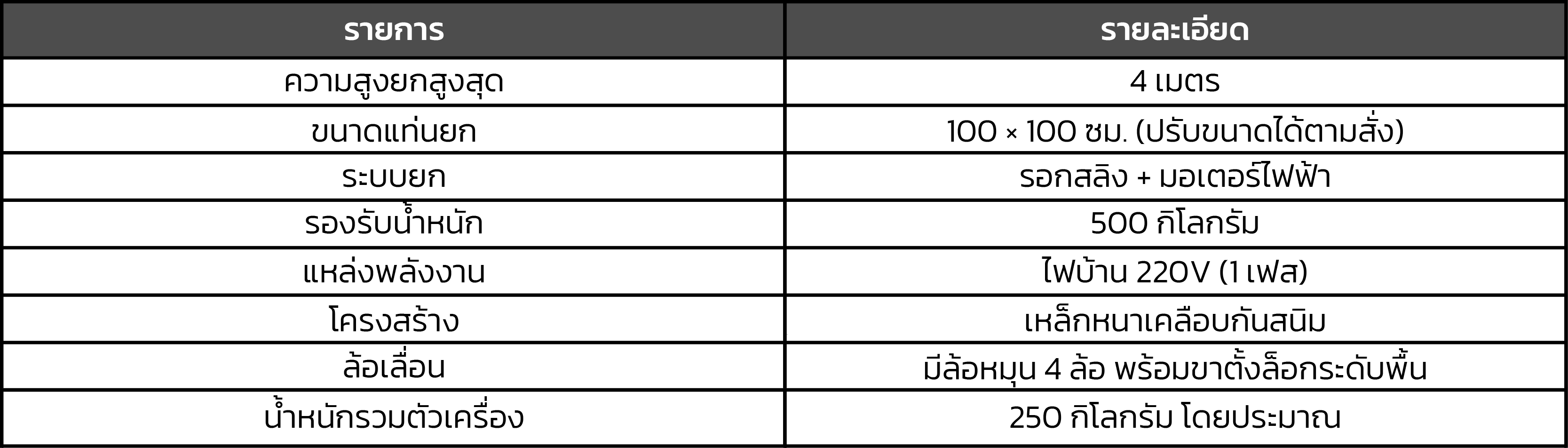 • ยกได้สูงสุดถึง 4 เมตร รองรับอาคารชั้นล่างถึงชั้นสอง