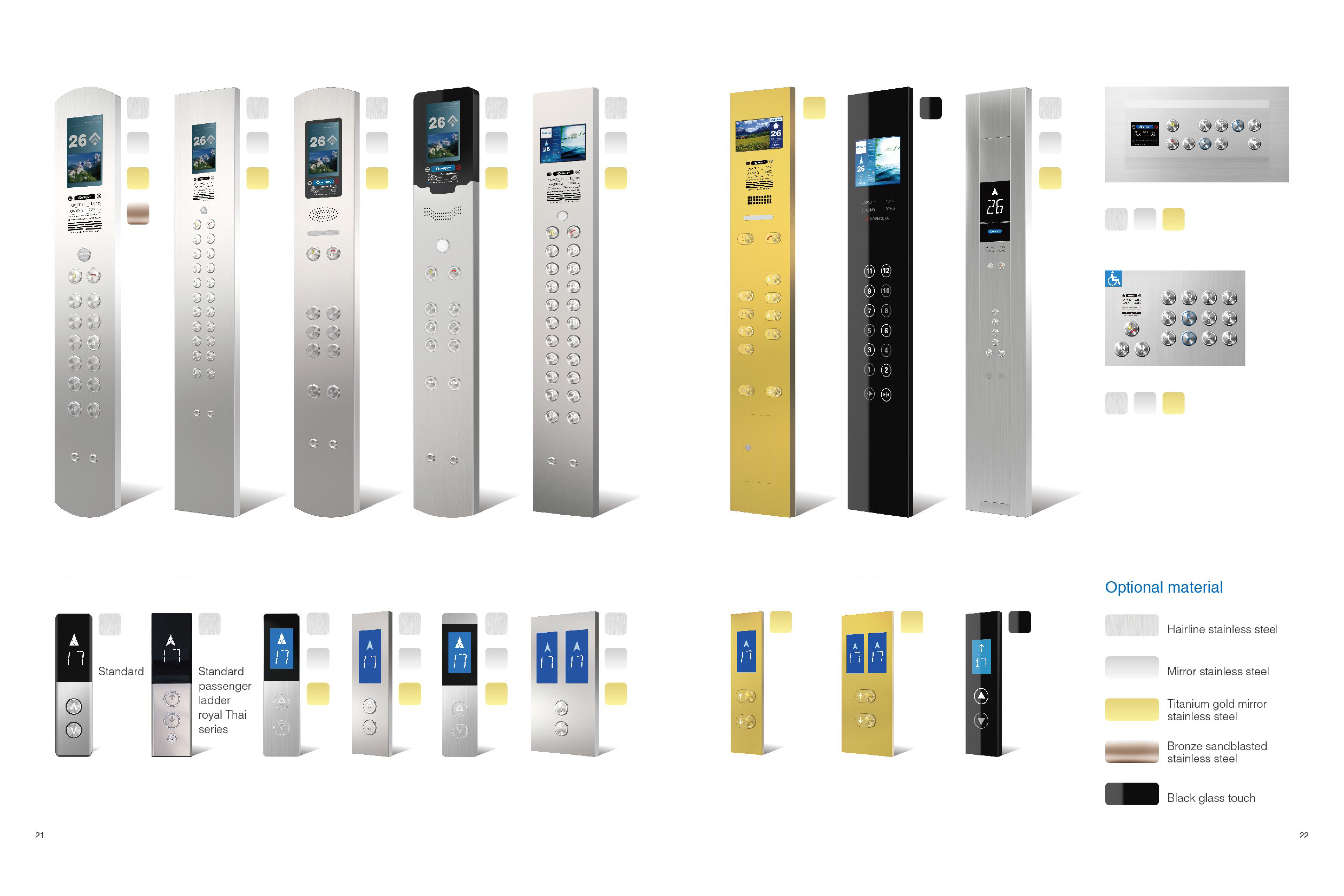 ปุ่มกดสั่งการที่แผงควบคุมในห้องโดยสารและปุ่มเรียกที่สถานีหน้าชั้น ใช้ปุ่มกดแบบไมโครมูฟเมนต์ (Micro-motion) |