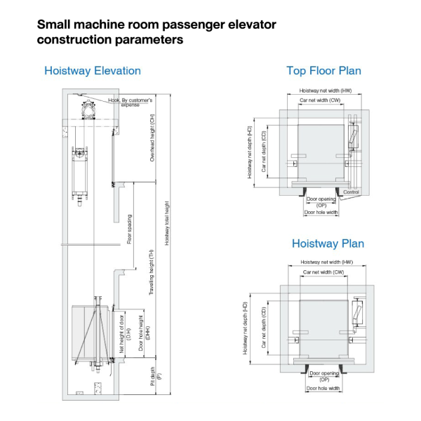 Small machine room passenger elevator construction parameters