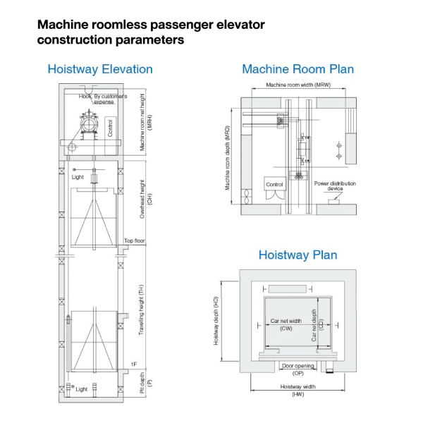 Machine roomless passenger elevator construction parameters